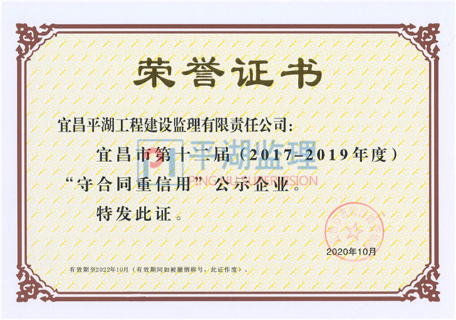 宜昌市第十二届(2017-2019年度)守合同重信用企业