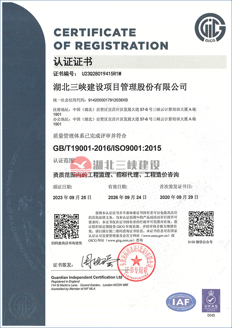 质量管理体系证书