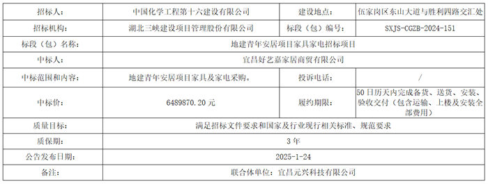 地建青年安居项目家具家电招标项目中标结果公告