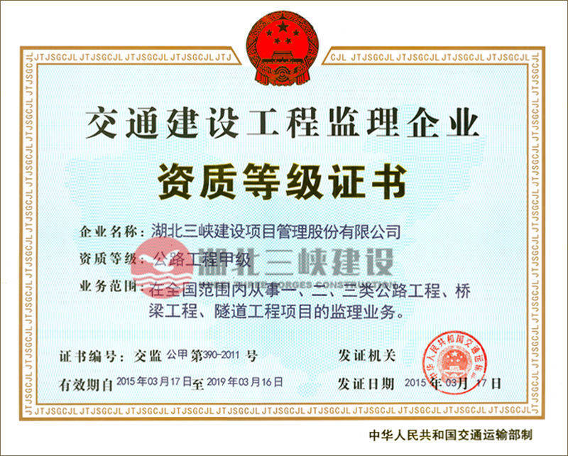 交通建设工程监理企业资质等级证书
